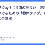 プロローグ(Day 0)で描いた「理想の拠点」を具体化するために、避けて通れないのが家探しです。台湾での生活の質、そして「家族の安心」を左右するのは、駅からの距離以上に**「物件タイプとの相性」**にあると考えます。