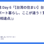 航海日誌 Day 6「【台湾の住まい】台湾と日本のアパート暮らし、ここが違う!驚きの『6つの相違点』」
