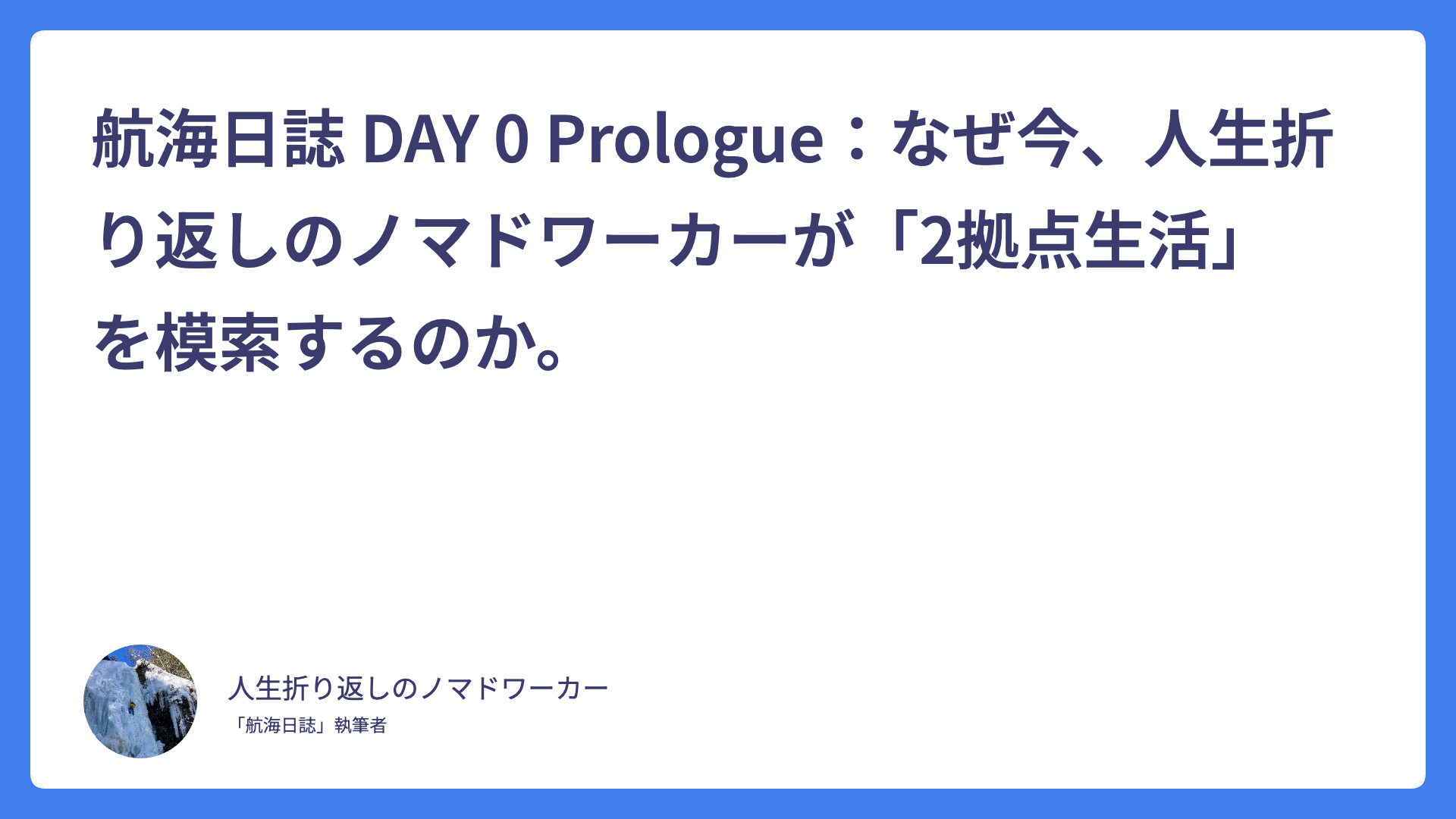 航海日誌 DAY 0 Prologue:なぜ今、人生折り返しのノマドワーカーが「2拠点生活」を模索するのか。 2026.02.03 Uncategorized spculeworks@yahoo.co.jp アジア・デュアルライフ・コンパス Asia dual compass