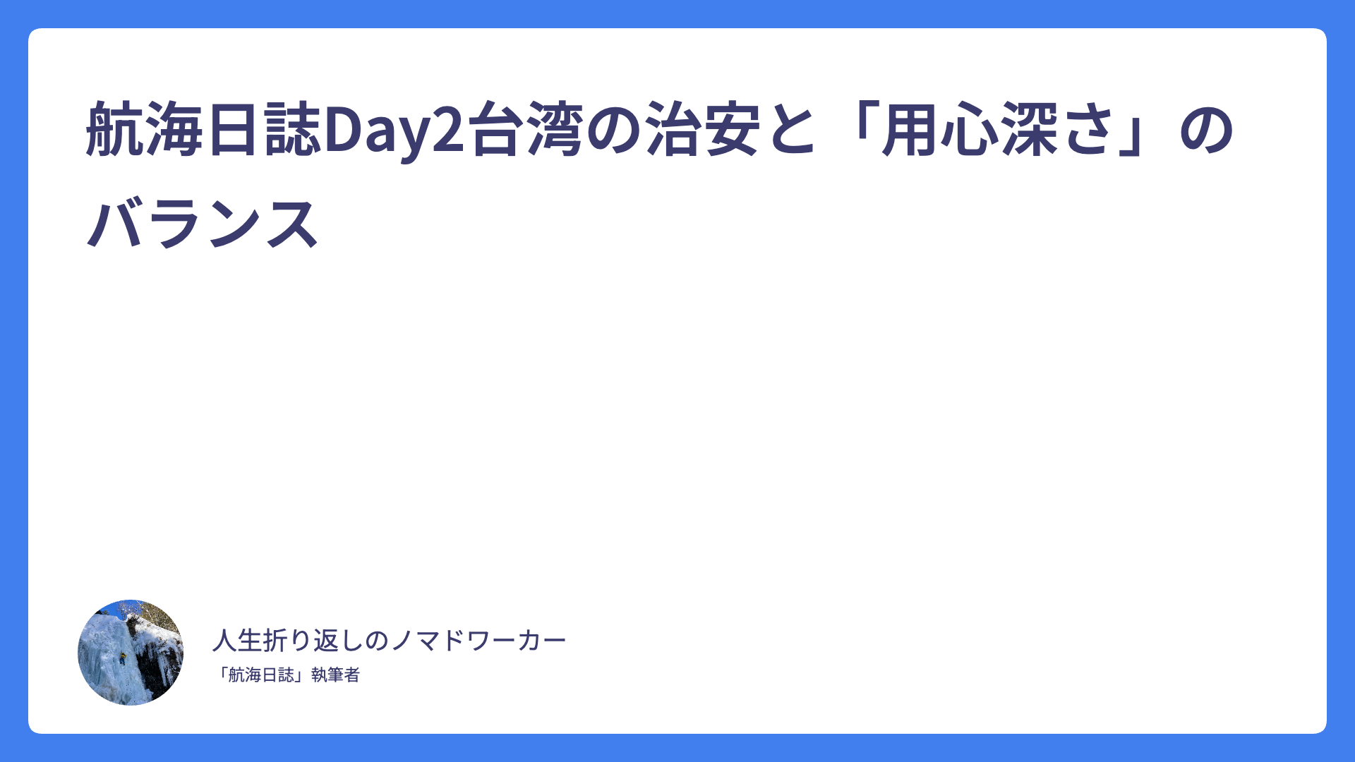 航海日誌Day2台湾の治安と「用心深さ」のバランス 2026.02.03 Uncategorized spculeworks@yahoo.co.jp アジア・デュアルライフ・コンパス Asia dual compass