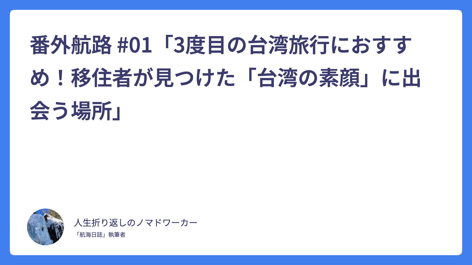 番外航路 #01「3度目の台湾旅行におすすめ!移住者が見つけた「台湾の素顔」に出会う場所」 2026.02.03 Uncategorized spculeworks@yahoo.co.jp アジア・デュアルライフ・コンパス Asia dual compass